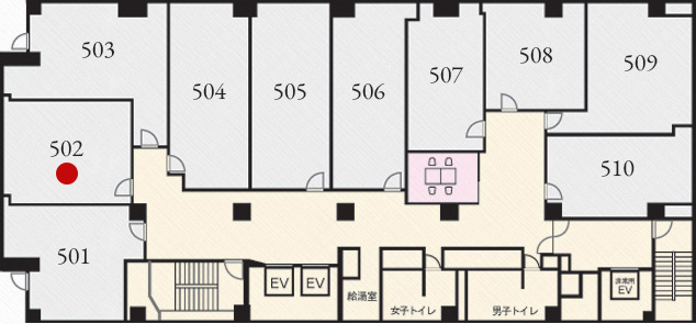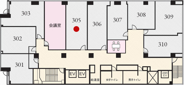 料金から選ぶ 部屋のタイプから選ぶ サービス内容から選ぶ オフィス情報OFFICE トップページ > オフィス情報 PRICEご利用料金 305 502 1106 1108 契約面積 42.50m² 37.95m² 27.42m² 25.71m² ご利用人数 6〜8名 6〜8名 4〜5名 4〜5名 利用料 167,440円 149,500円 116,340円 109,060円 電気空調基本料 28,100円 25,000円 17,900円 16,800円 月額固定費 195,540円詳細をみる 174,500円詳細をみる 134,240円詳細をみる 125,860円詳細をみる ※横スクロールでご覧いただけます。 OFFICEオフィス情報 3F 4F 5F 6F 11F 1F 3F ※ 赤丸をクリックするとお部屋の詳細情報をご覧いただけます。 3F エレベーター前ディスプレイ 3F ミーティング&レストスペース 4F 4F ゆったりとした共有空間 4F ミーティング&レストスペース 5F ※ 赤丸をクリックするとお部屋の詳細情報をご覧いただけます。 5F エレベータ前ホール 5F ミーティング&レストスペース 6F 6F エレベータ前ホール 6F ミーティング&レストスペース 11F ※ 赤丸をクリックするとお部屋の詳細情報をご覧いただけます。 11F エレベータ前ホール 11F ミーティング&レストスペース 1F 1F ビル玄関 1F エントランス 1F フロント